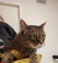 Biba née le 25/11/2012. Femelle de type européen. Identifiée, vaccinée, stérilisée et testé négatif leucose et FIV. Arrivée le 28/11/2025 suite au décès de son propriétaire.